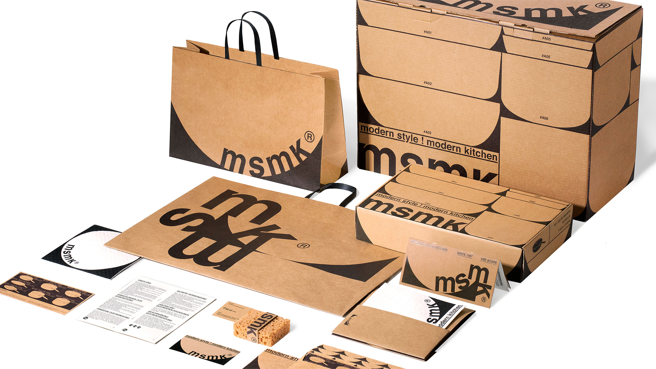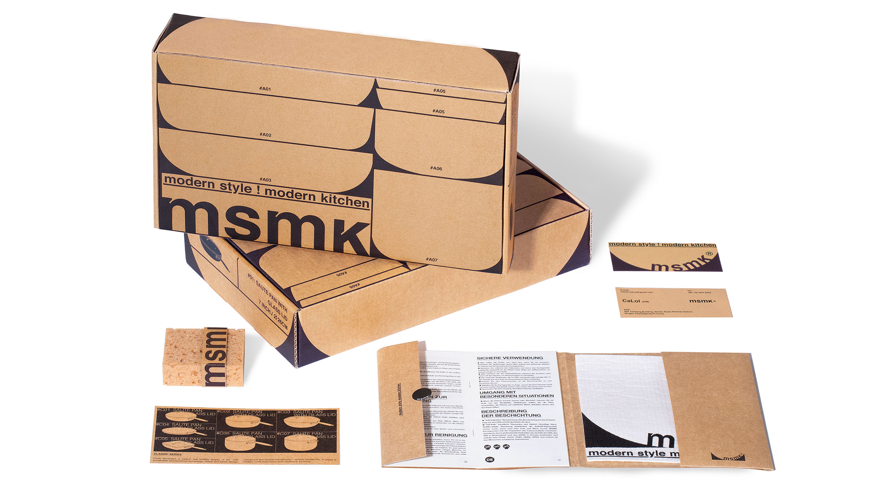 This design draws inspiration from the shape of cookware and aims to highlight the utilitarian core of the MSMK brand. The MSMK brand name emerges in a sliding manner within the geometric shapes of the cookware, injecting a touch of dynamism under the utilitarian brand manifesto. Auxiliary graphics are derived from the abstract forms of the brand's entire line of cookware products, not only enriching the brand image but also serving as a product retrieval system applied to packaging.
