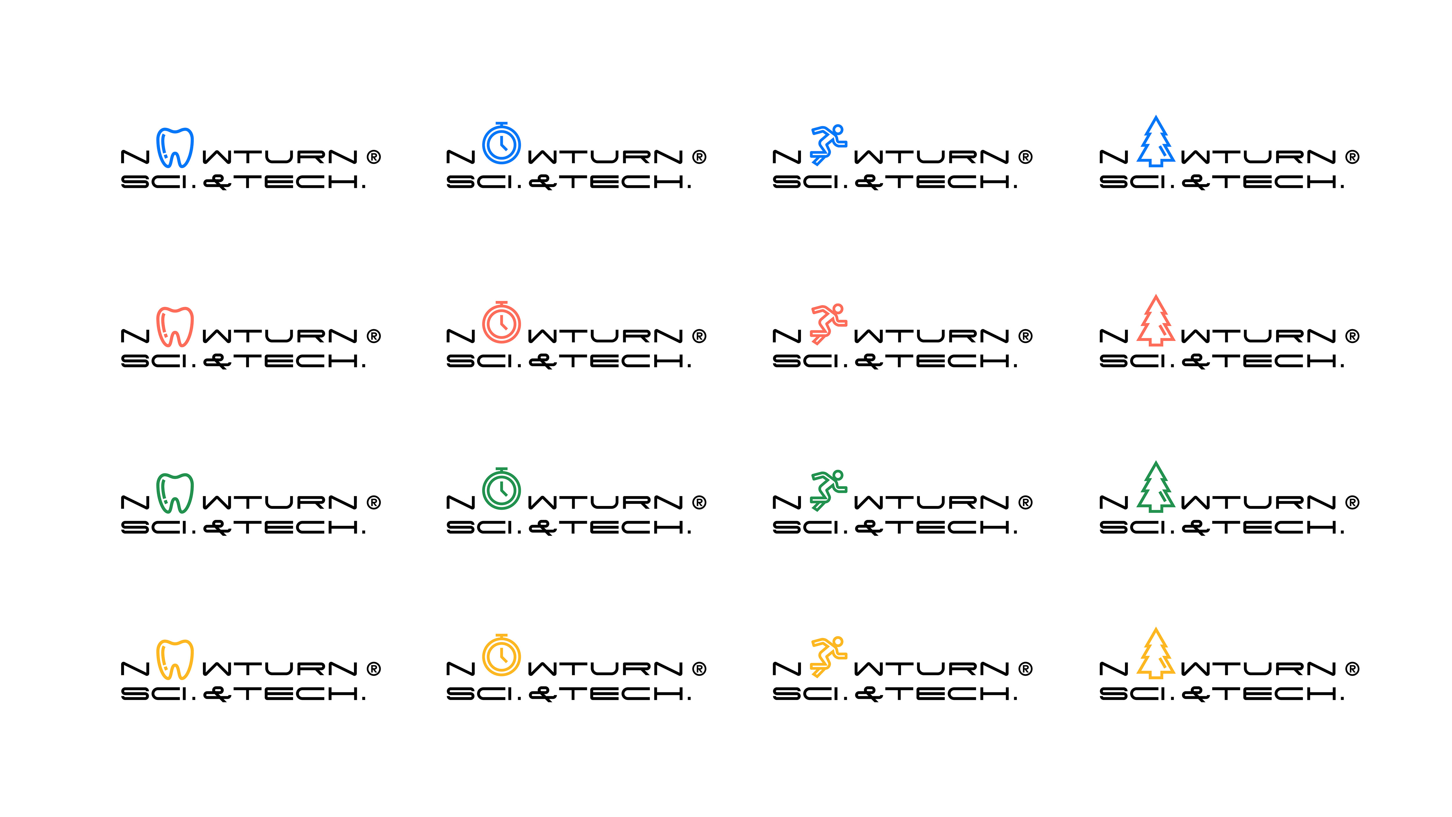 锘顿作为新一代医疗器械品牌,我们将视觉语言放在更加国际化的背景之下,其英文名称命名为“NOW TURN”,取“转变,就现在!”之意。标志设计中,以英文字符作为标志本体,以可变的拉长字符灵活延展至一套英文字形,与其口腔器械相关的功能形态形成一定的视觉链接。