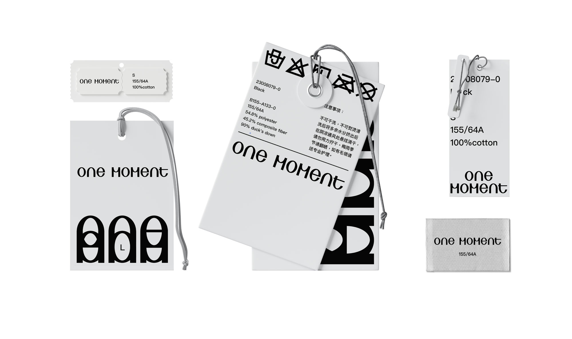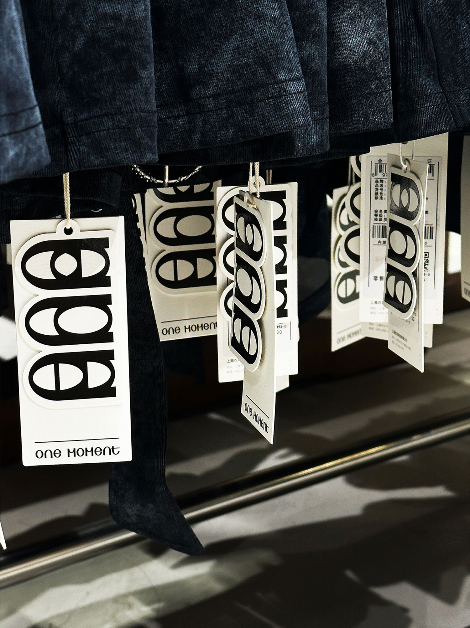 ONE MOMENT 是面向 Z 世代的潮流品牌,我们为其打造了品牌标识与基础视觉系统。设计通过定制非衬线字体和上下错位交叠的字母组合,构建出灵动俏皮的现代的视觉符号。标识系统轻松直接的构成方式,呼应品牌自由混搭的穿搭理念。应用上以黑白为主、高饱和色点缀,平衡街头感与精致度,建立起鲜明统一的视觉形象,连接起现代青年的审美与生活方式。