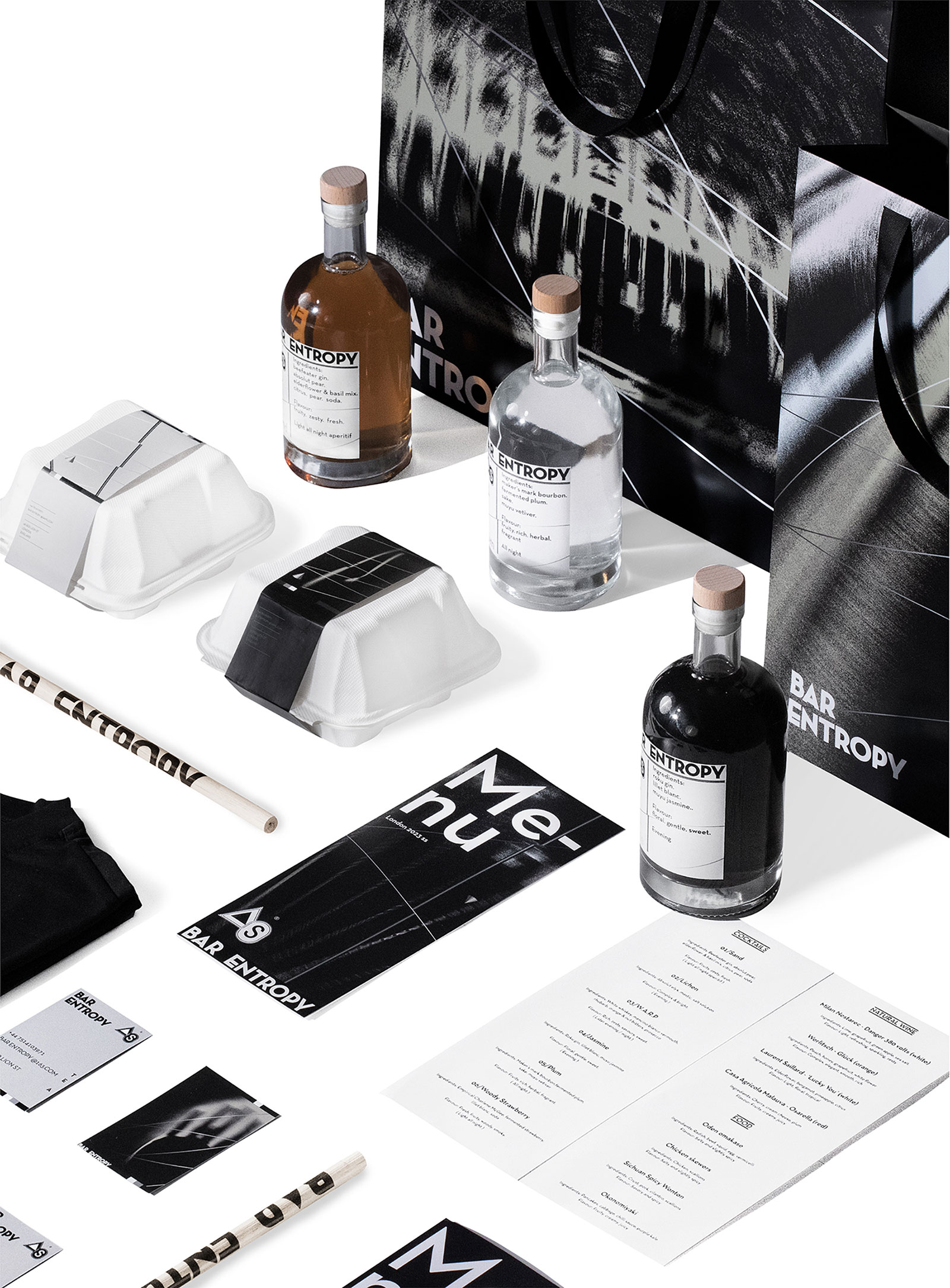 熵吧是一家位于伦敦的电子音乐酒吧。在设计中,我们选择最原始的热力学求熵公式作为核心图形,并在其他物料的应用中铺陈了图像的粒子模糊效果,以此表达“熵”这个物理概念的动态性与实时性。